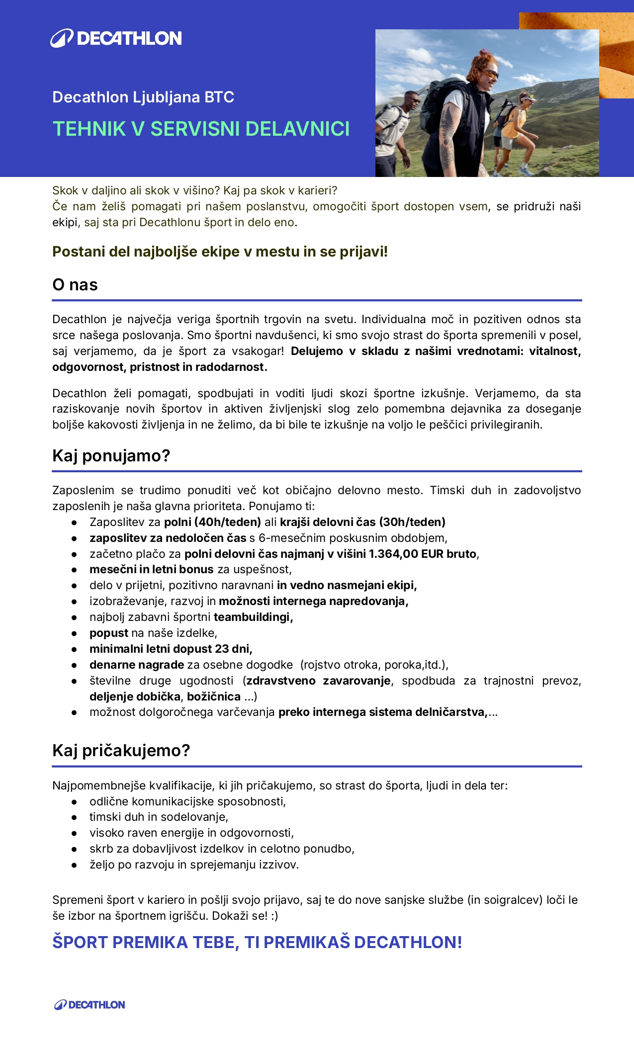 Dostop do vaših osebnih podatkov imajo le zaposleni pri podjetju Decathlon, ki sodelujejo pri postopku izbire. Vaši osebni podatki se bodo prenesli v podjetje Adopto Tech Ltd. Z namenom koriščenja aplikacije Talentlyft.