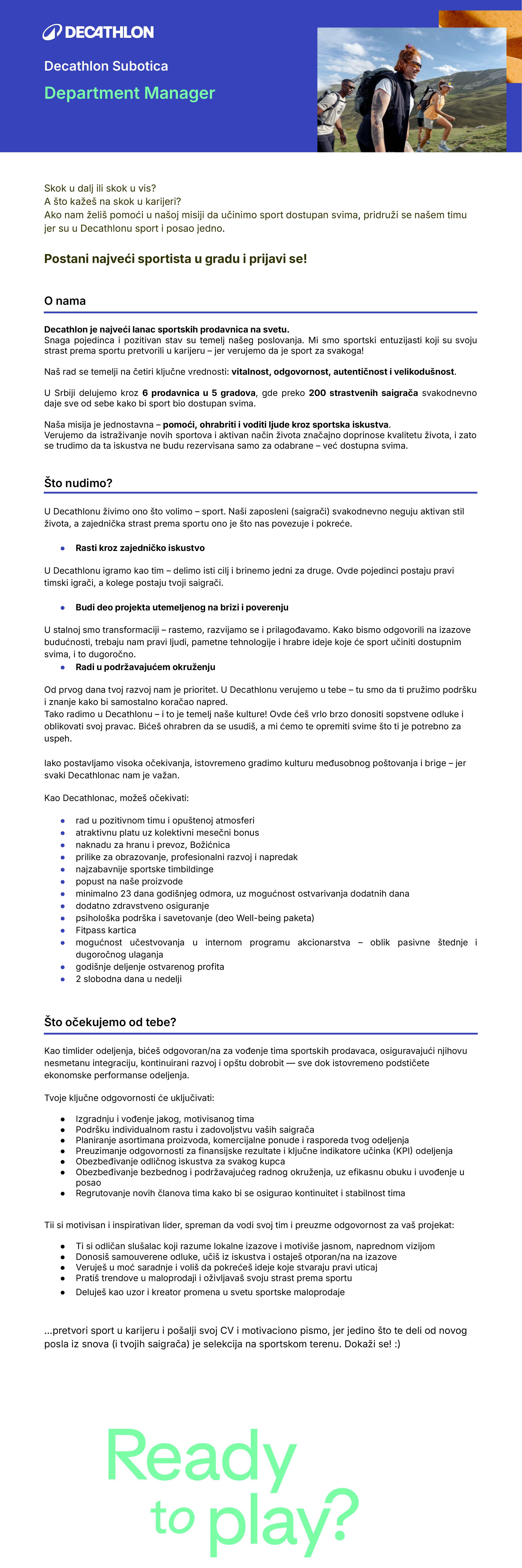 Samo zaposlenici Decathlona koji sudjeluju u postupku odabira imaju pristup vašim osobnim podacima.