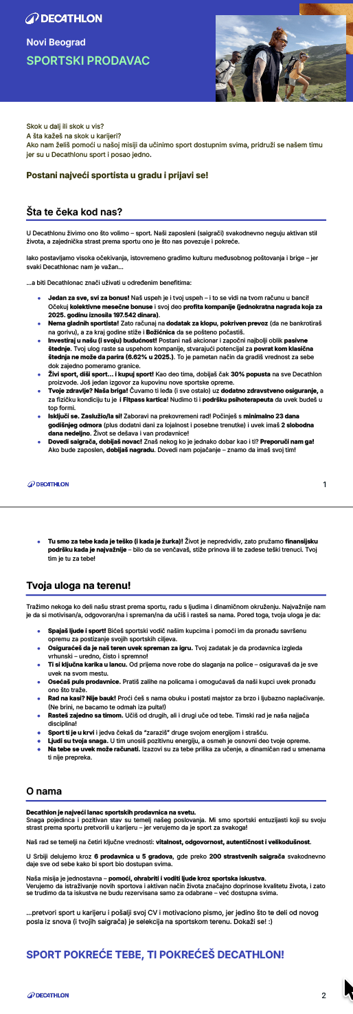 Kompanija Decathlon koristi TalentLyft, aplikaciju koju je razvila kompanija Adopto Tech ltd. (u daljem tekstu „TalentLyft‟), kao deo našeg procesa selekcije novih radnika.