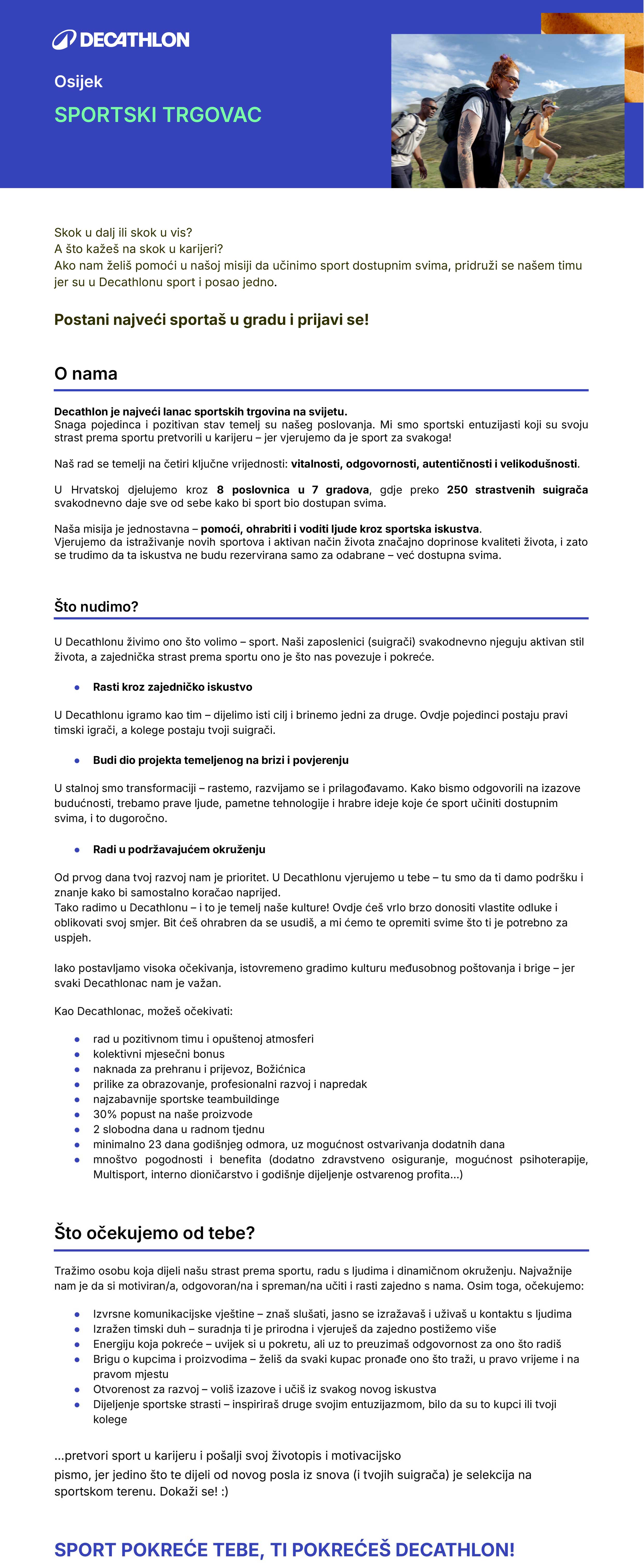 Sportski trgovac - Decathlon Osijek (m/ž)