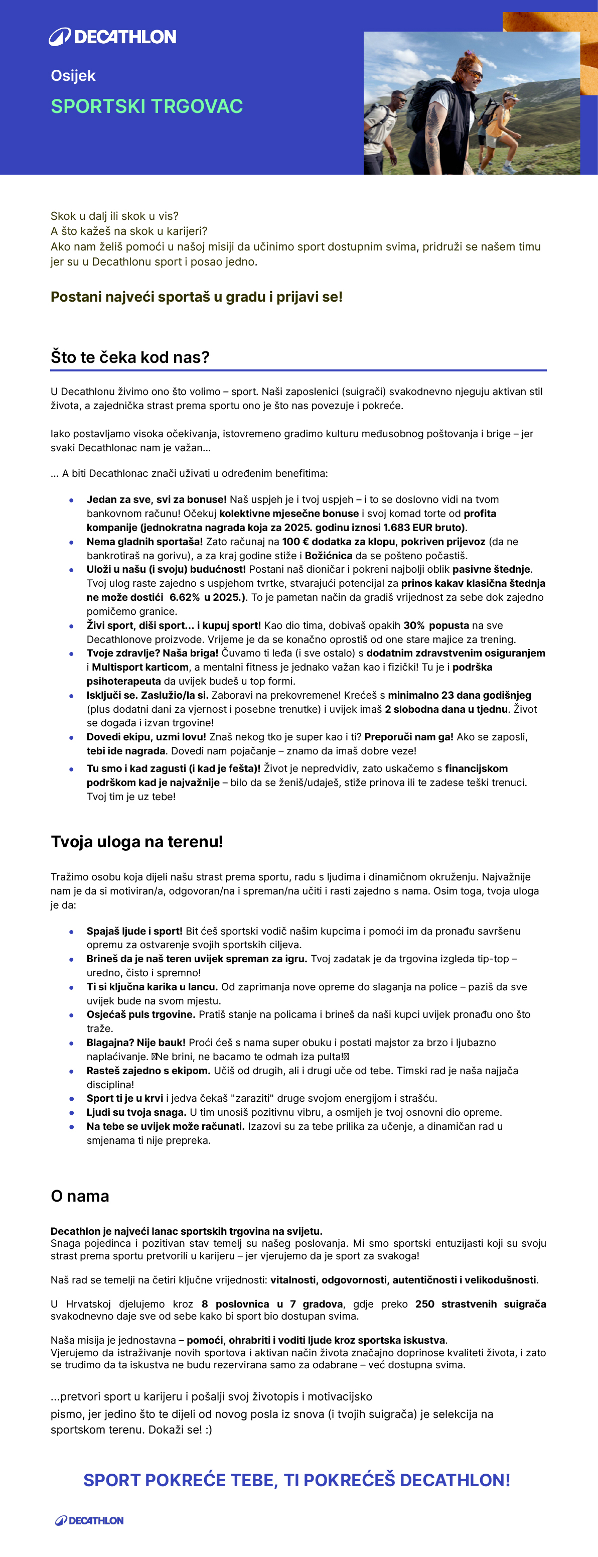 Samo zaposlenici Decathlona koji sudjeluju u postupku odabira imaju pristup vašim osobnim podacima.