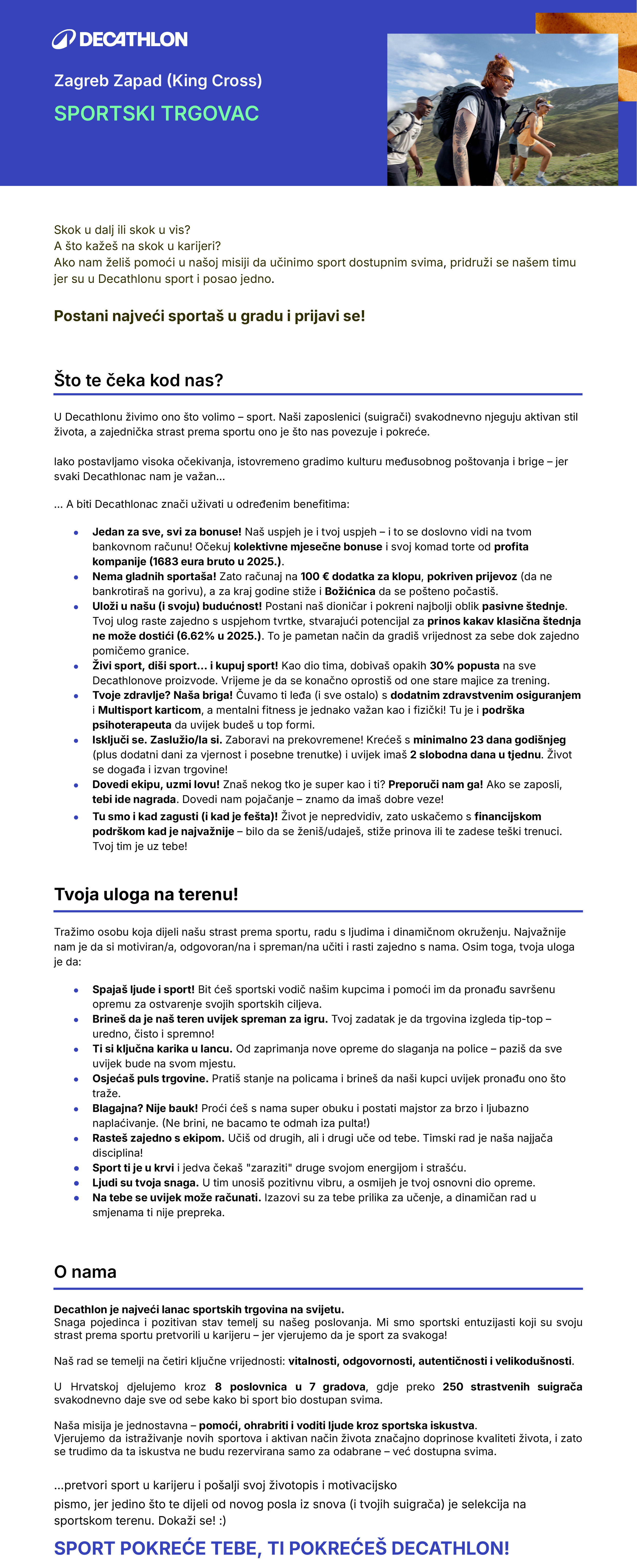 Samo zaposlenici Decathlona koji sudjeluju u postupku odabira imaju pristup vašim osobnim podacima.