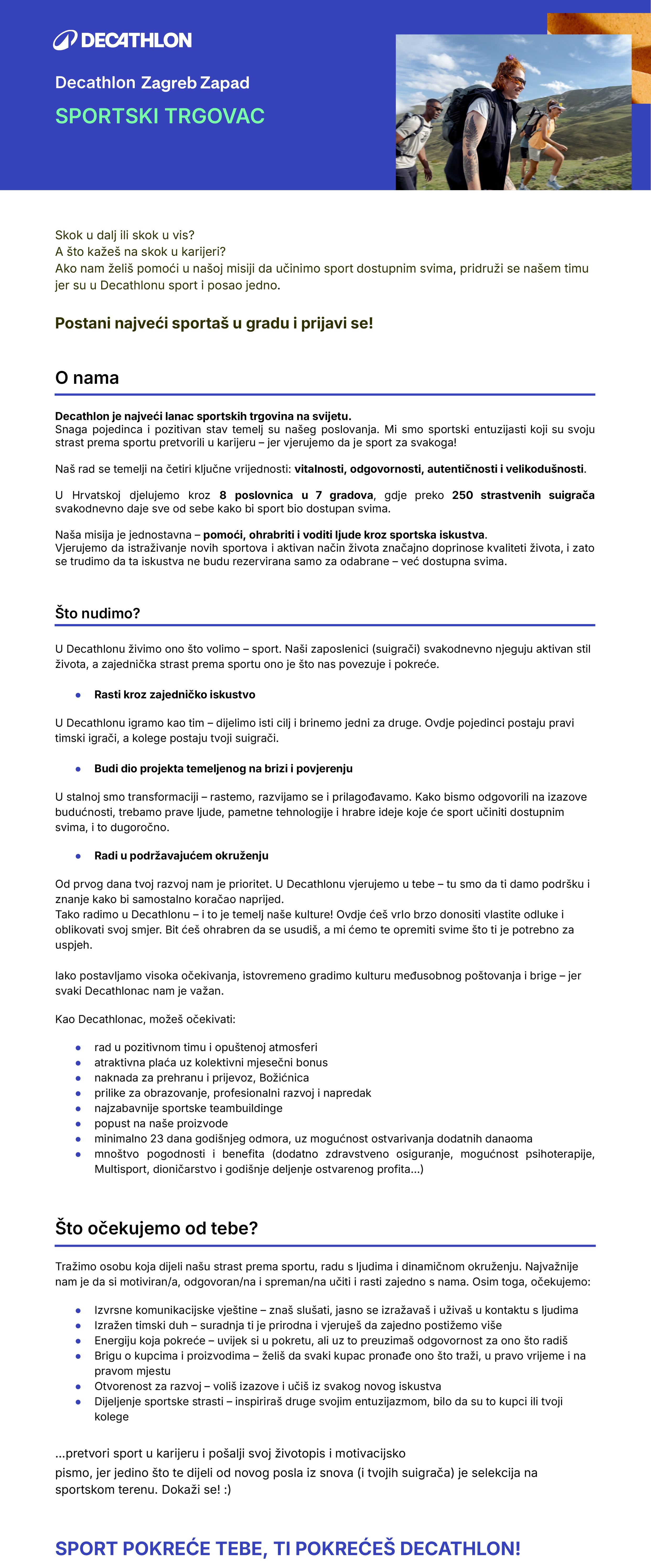 Samo zaposlenici Decathlona koji sudjeluju u postupku odabira imaju pristup vašim osobnim podacima.