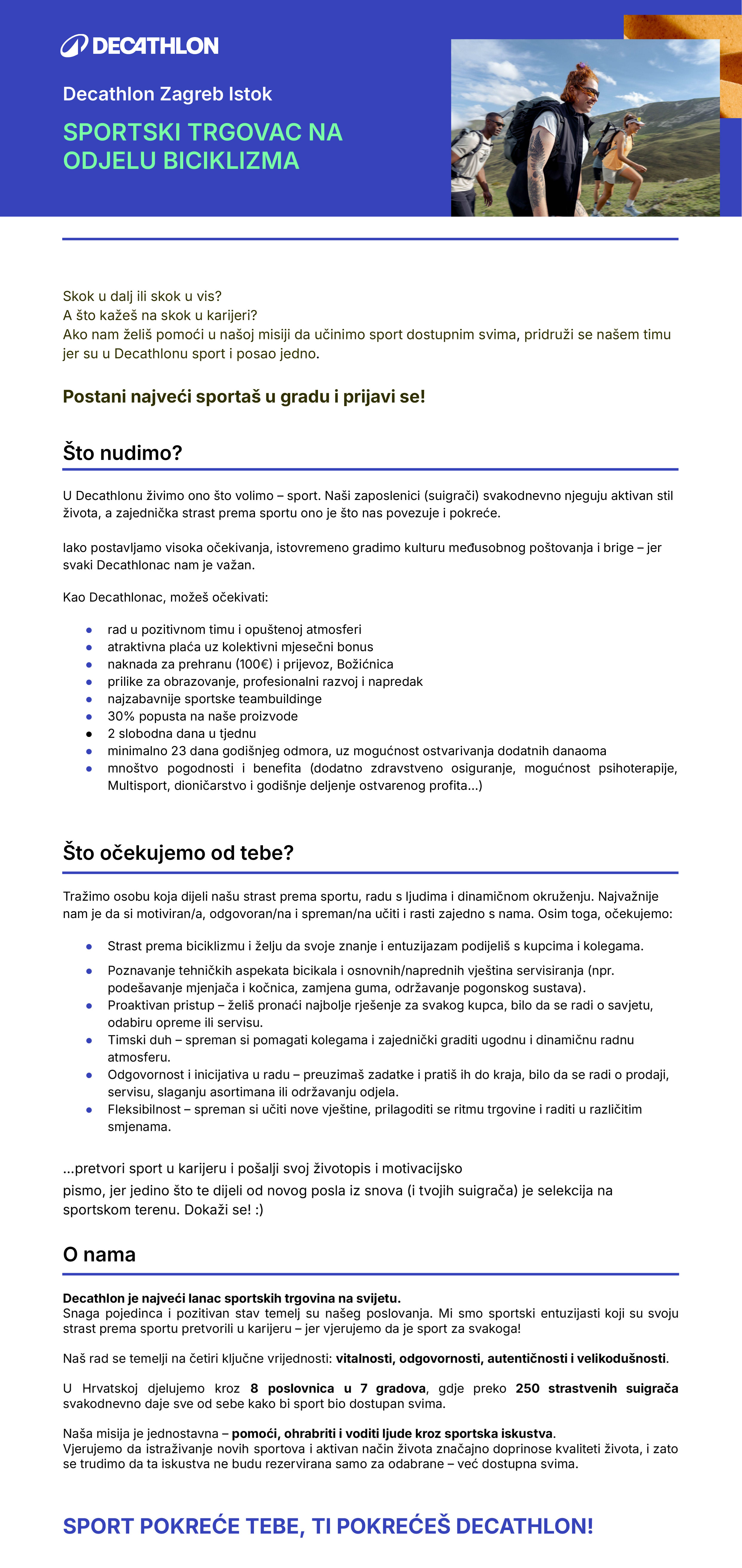 Sportski trgovac na odjelu biciklizma - Decathlon Zagreb Istok (m/ž)
