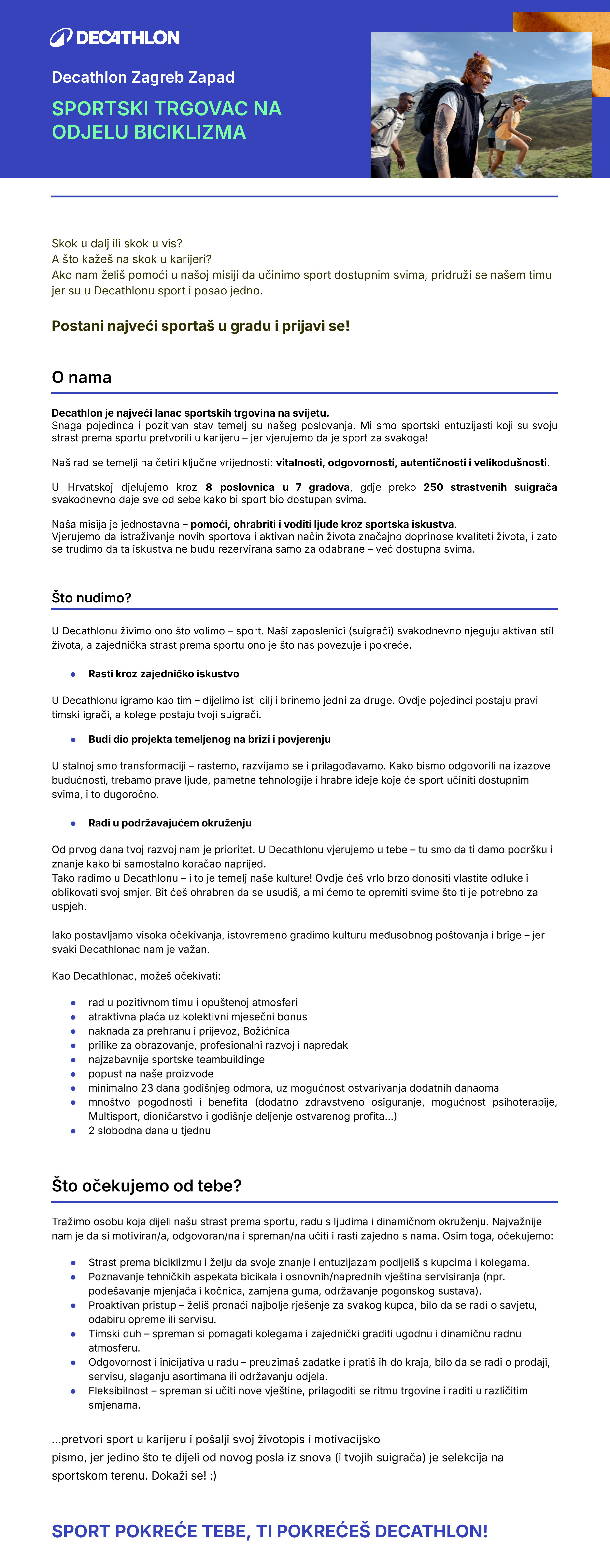 Sportski trgovac na odjelu biciklizma - Decathlon Zagreb Zapad (m/ž)
