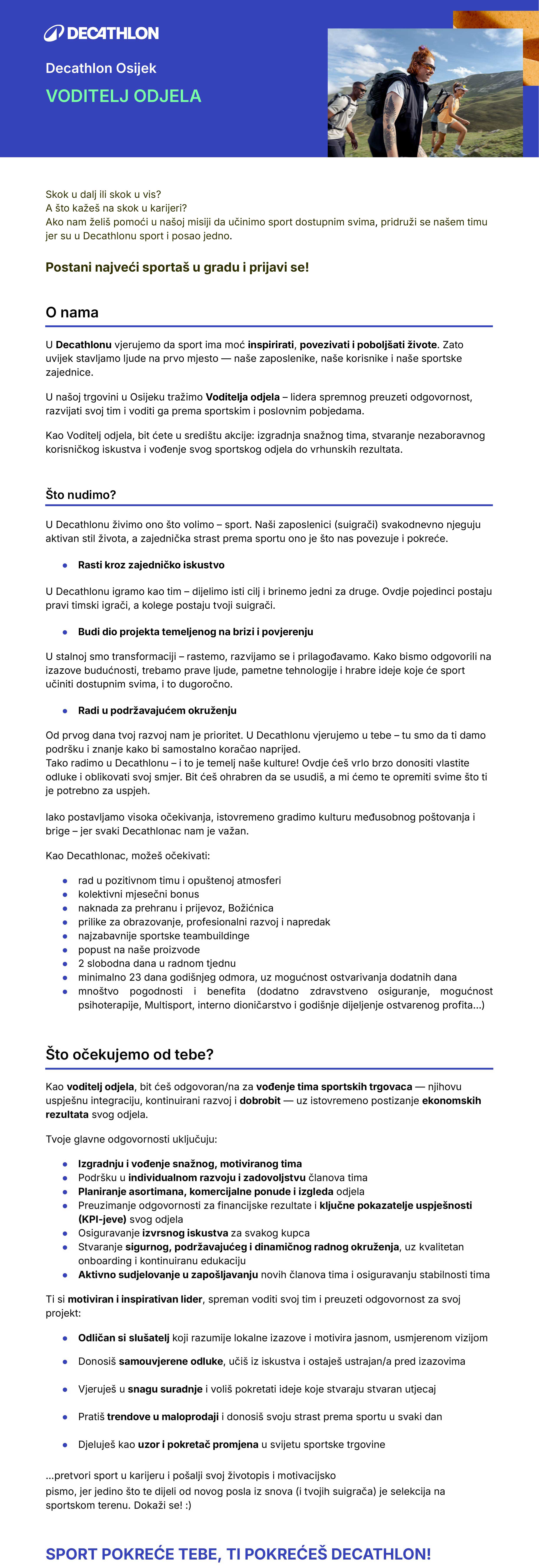 Samo zaposlenici Decathlona koji sudjeluju u postupku odabira imaju pristup vašim osobnim podacima.