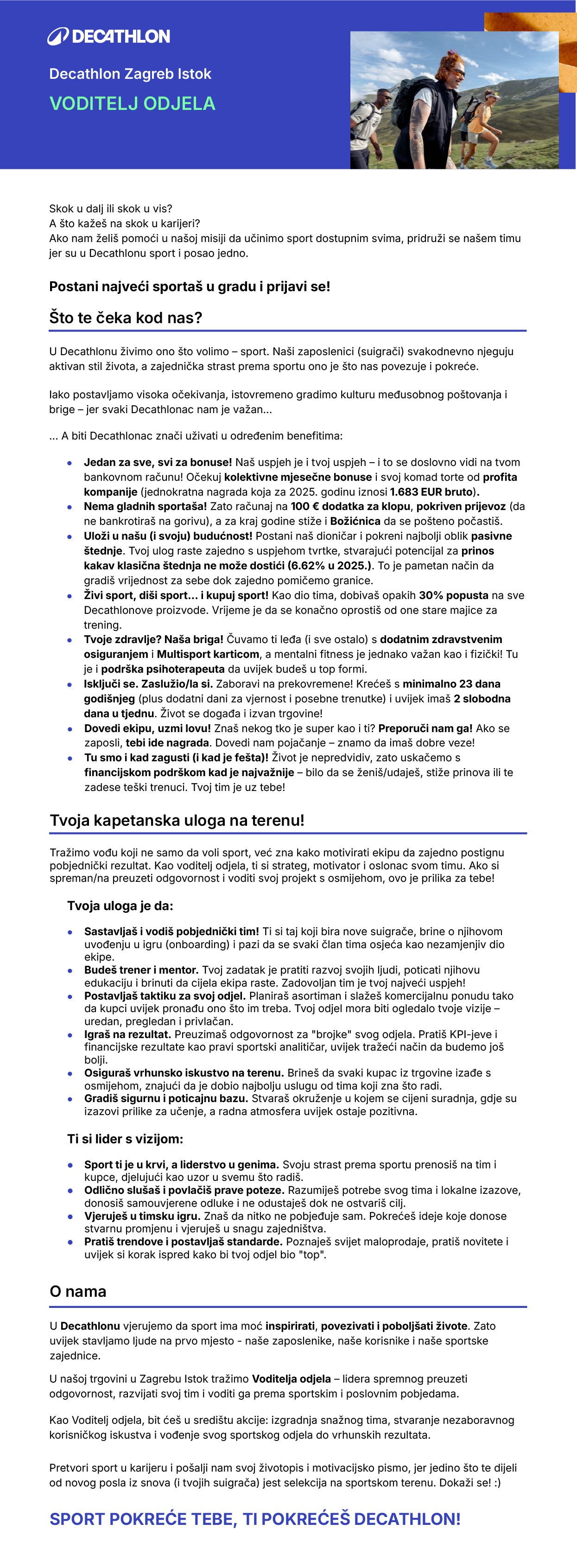 Samo zaposlenici Decathlona koji sudjeluju u postupku odabira imaju pristup vašim osobnim podacima.
