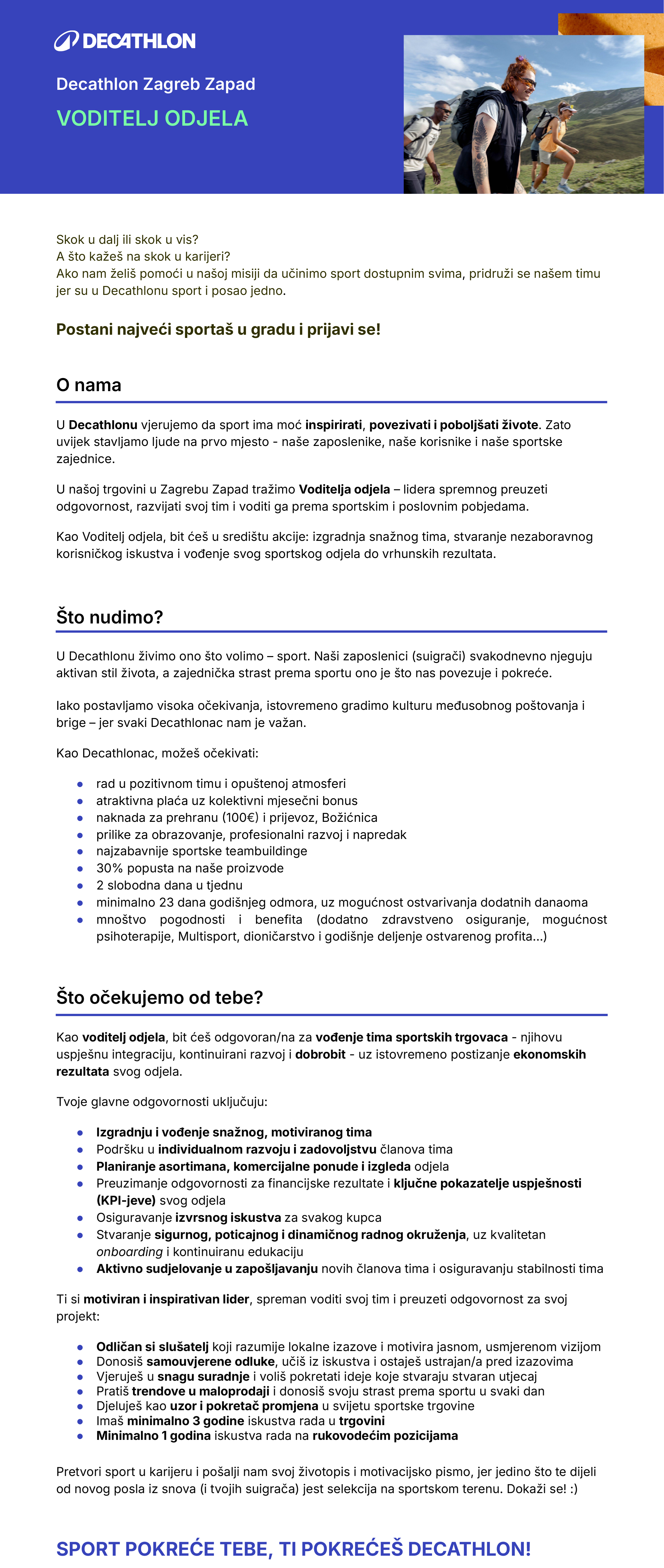 Voditelj odjela - Decathlon Zagreb Zapad (m/ž)